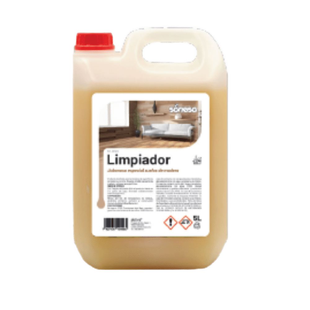Limpiador jabonoso para madera 5L – Higiene y protección para superficies delicadas El Limpiador jabonoso para madera 5L está especialmente formulado para limpiar y proteger superficies de madera y corcho, respetando su acabado y brillo natural. Su fórmula suave elimina la suciedad sin dañar los materiales, prolongando la vida útil de los suelos y muebles de madera. Ideal tanto para uso doméstico como profesional, proporciona un acabado limpio, natural y protegido tras cada aplicación. Características destacadas: • Limpieza eficaz y suave para madera y corcho • Protege y respeta el brillo natural de las superficies • Ideal para suelos, muebles y superficies delicadas • Apto para uso doméstico y profesional • Formato práctico de 5 litros .
