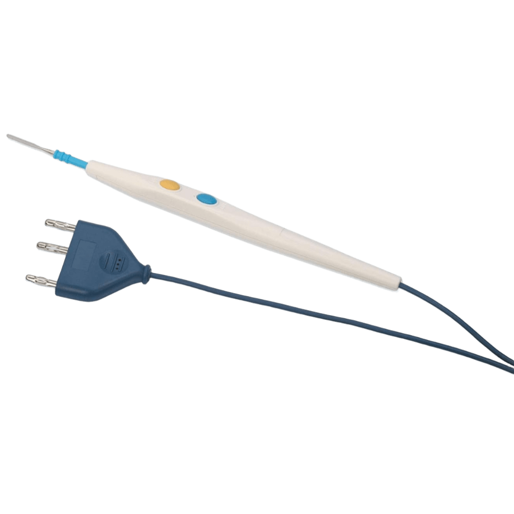 MANGO ELECTROBISTURÍ ESTÉRIL DESECHABLE - CAJA DE 50 UDS Mango de electrobisturí estéril y desechable, diseñado para ofrecer precisión, seguridad y comodidad en procedimientos quirúrgicos. Compatible con la mayoría de generadores electroquirúrgicos. Presentación: caja con 50 unidades.