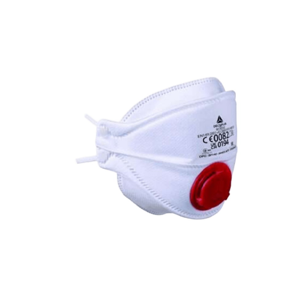 Mascarilla Respiratoria Desechable FFP3 con Válvula – Caja x10 Mascarilla FFP3 de fibra sintética no tejida, con válvula de alto rendimiento, puente nasal con espuma y 4 pestañas para ajuste facial óptimo.