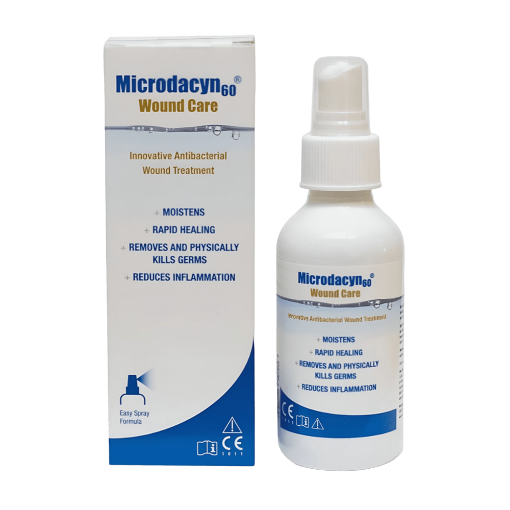 MICRODACYN 60 SPRAY 250 ML - UNIDAD Microdacyn 60 Spray 250 ml es una solución antimicrobiana y cicatrizante para la limpieza, irrigación y cuidado de heridas agudas o crónicas. No tóxica, sin alcohol ni yodo, apta para piel sensible y uso hospitalario o domiciliario.