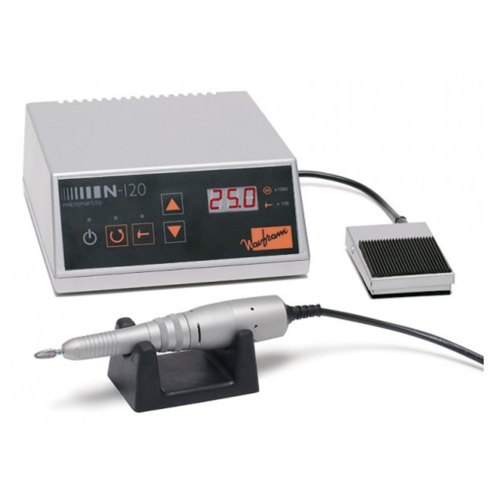 El micromotor Navfram N-120 es una herramienta de sobremesa de fabricación española, conocida por su fiabilidad y precisión. Es muy utilizado en talleres de joyería, laboratorios dentales, podología y aplicaciones de estética, como el pulido de uñas