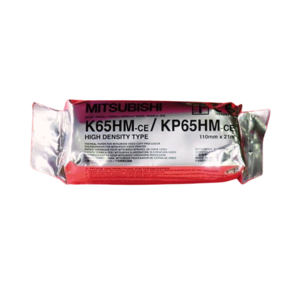 Papel Ecógrafo Mitsubishi K65HM – 110 mm x 20 m, Blanco Rollo térmico de alta calidad para impresoras de ecógrafo. Ancho 110 mm, largo 20 m, diámetro interior 12 mm. Papel blanco, compatible con equipos Mitsubishi.