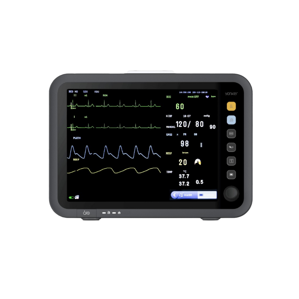 Monitor de Paciente YK-8000C – Monitorización completa con pantalla de 12” Monitor multiparámetro con ECG, SPO2, presión arterial, temperatura y respiración. Pantalla TFT de 12” a color, alarmas visuales y sonoras. Ideal para hospitales, quirófanos y ambulancias.
