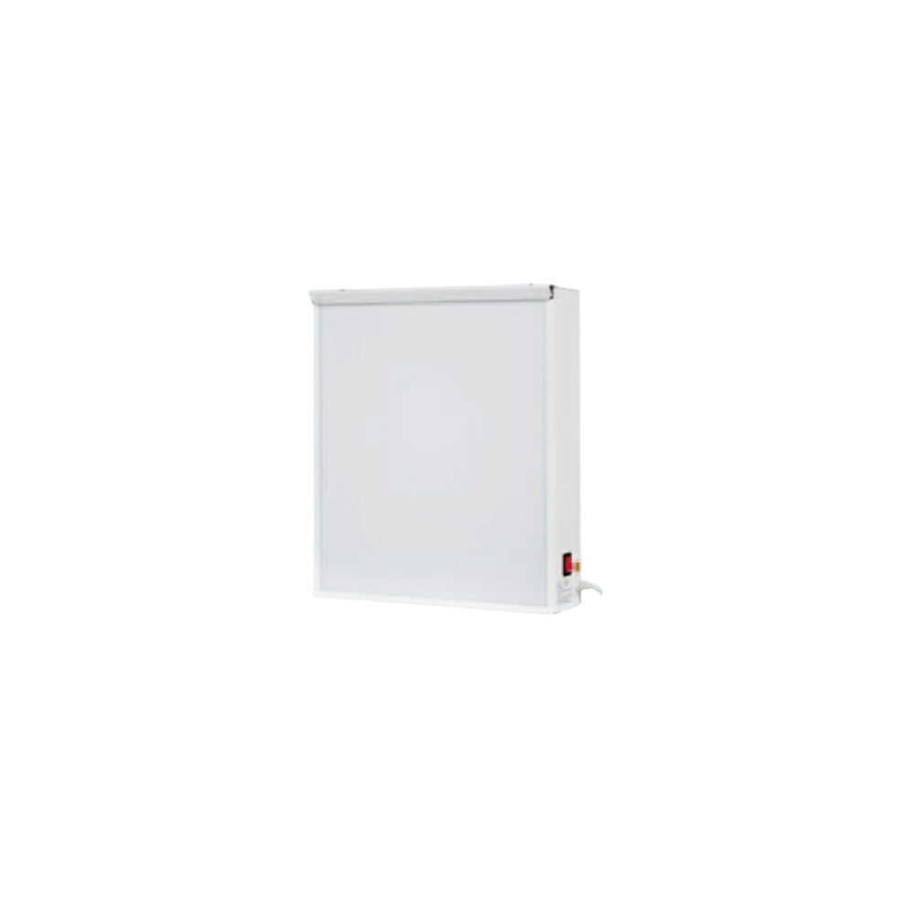 Negatoscopio de 1 pantalla mural con iluminación homogénea Negatoscopio de acero esmaltado epoxi, pantalla de metacrilato opal, tubo fluorescente de 300 W y sistema de sujeción por gravedad.