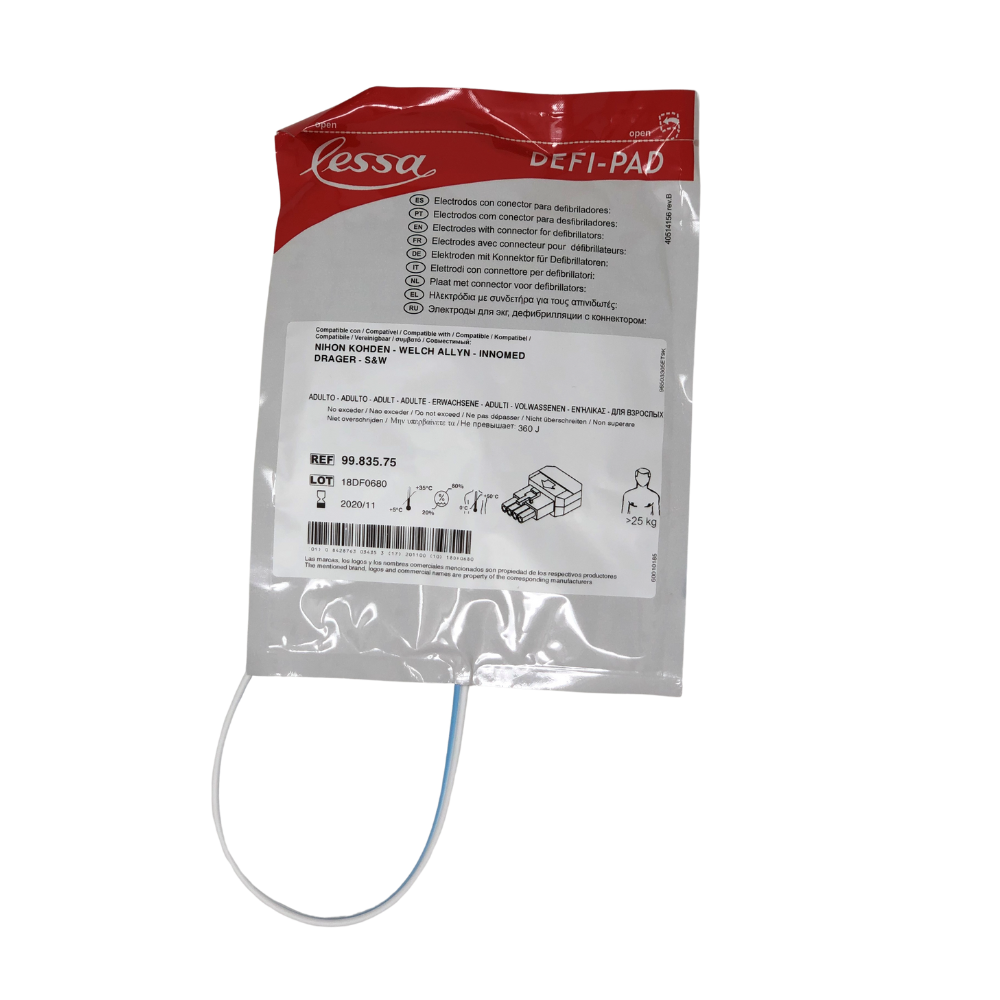 Parches PAD para Desfibrilador WA-NK – Alta Eficiencia con Cable Externo Integrado Los parches PAD para desfibrilador WA-NK están diseñados para ofrecer un rendimiento clínico óptimo en procedimientos de desfibrilación externa. Cada electrodo cuenta con una superficie total de 136 cm², con una área activa de 100 cm², lo que permite una cobertura adecuada y una distribución uniforme de la energía eléctrica para un choque eficaz y seguro. Están fabricados con gel conductor adhesivo que garantiza una excelente conductividad y una adherencia firme, incluso durante maniobras de reanimación. Cuentan con un cable externo preconectado de 120 cm, lo que facilita su colocación rápida en situaciones de emergencia, mejorando la eficiencia del equipo de atención. Características principales: Compatibilidad: desfibriladores WA-NK. Superficie total por electrodo: 136 cm². Área activa por electrodo: 100 cm². Longitud del cable: 120 cm. Aplicaciones: desfibrilación externa en emergencias médicas. Ventajas: alta conductividad, colocación rápida, excelente cobertura torácica. .