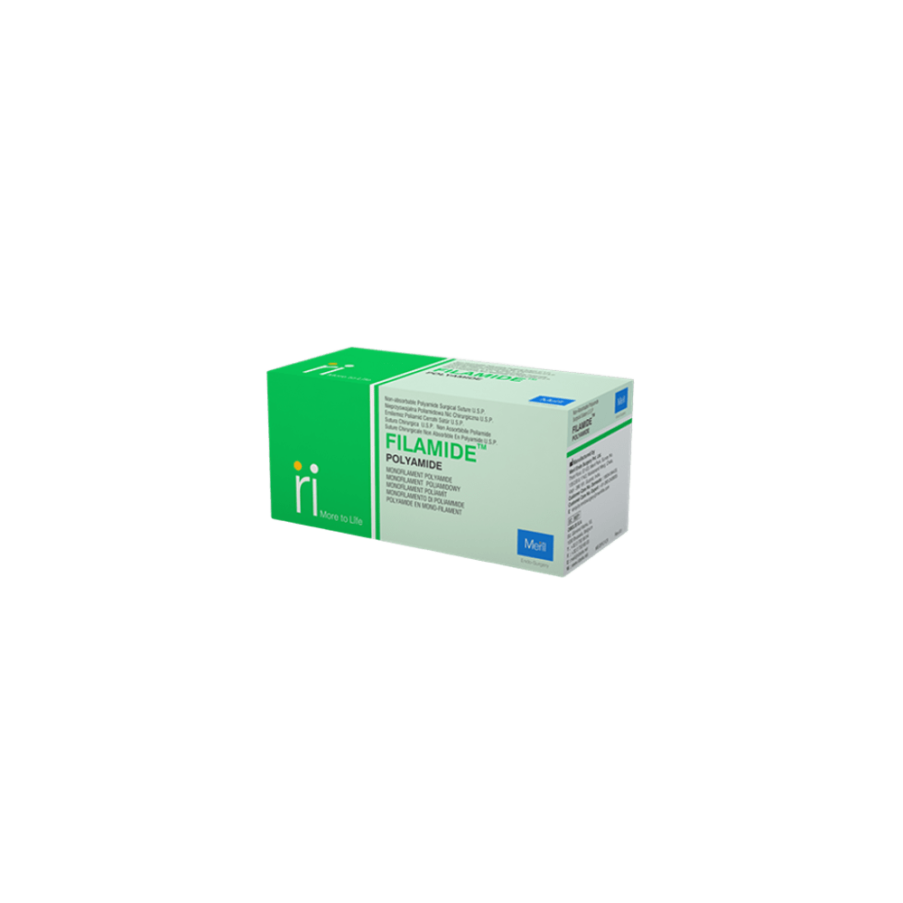 Sutura FILAMIDE POLIAMIDE agua x mm. REVERSE CUTTING 3/8 CIR X cm. Caja 12 unidades. Filamide™ es una sutura quirúrgica sintética, no absorbible y monofilamento de poliamida, diseñada para una mínima reacción tisular y máxima precisión en procedimientos quirúrgicos, incluyendo cirugía cardiovascular, oftálmica y microcirugía