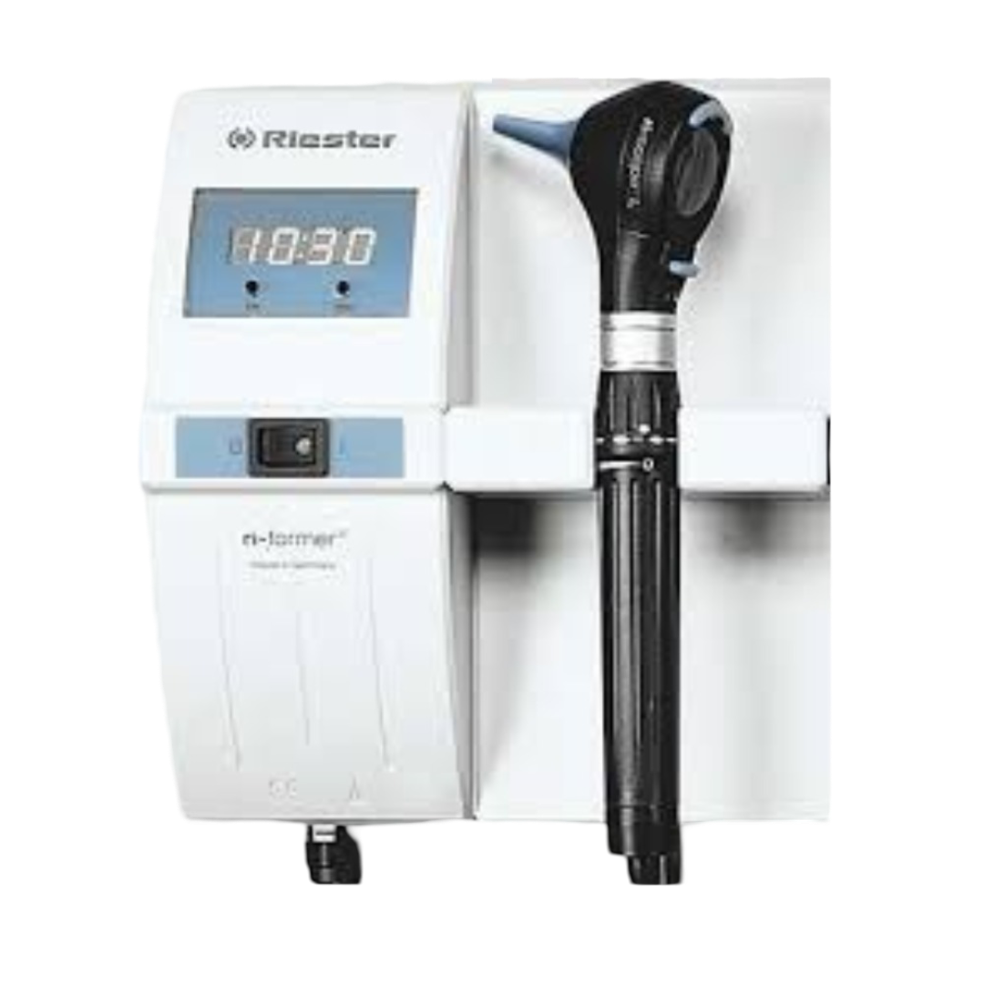 Otoscopio de Pared Riester Ri-Former con Mango y Cabezal L1 – Diagnóstico modular profesional La unidad de diagnóstico Riester Ri-Former es un sistema mural modular y ampliable, especialmente diseñado para clínicas, consultas médicas y entornos profesionales que requieren soluciones eficientes y organizadas. Este conjunto incluye una base mural con un mango y un cabezal de otoscopio L1, ofreciendo una solución compacta pero escalable, ya que permite añadir hasta cuatro mangos adicionales (a izquierda o derecha), según las necesidades del espacio y el flujo de trabajo. El sistema cuenta con una alimentación centralizada de 230V/3,5V, lo que evita el uso de baterías, reduce costes y es más respetuoso con el medio ambiente. Su transformador electrónico integrado proporciona una tensión de salida constante, garantizando una iluminación estable y duradera, prolongando la vida útil de las lámparas. Características de la base mural Ri-Former: • Sistema modular ampliable hasta 5 mangos. • Alimentación eléctrica centralizada (230V/3,5V). • Transformador electrónico que garantiza intensidad lumínica óptima. • Cables en espiral extensibles hasta 3 metros. • Encendido/apagado automático al retirar o colocar el mango. • Mangos antideslizantes con regulación de intensidad (reóstato). • Fácil limpieza y desinfección. • Incluye placa mural, tacos y tornillos. Cabezal Otoscopio L1 incluido: • Iluminación directa con lámpara de xenón 3,5V. • Óptica de vidrio con 3 aumentos, orientable a ambos lados. • Alojamiento metálico para espéculos, compatible con espéculos reutilizables o desechables. • Apto para pruebas neumáticas (se suministra sin pera). .