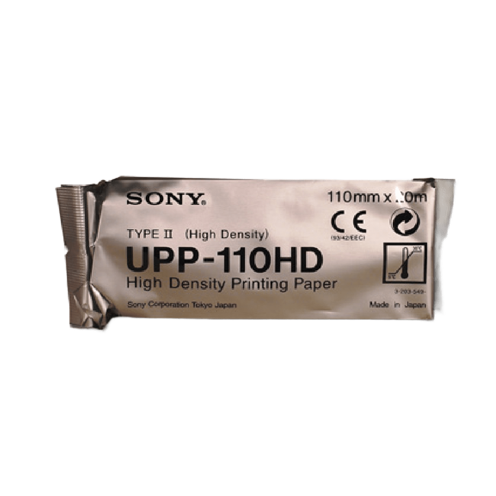 El papel ecógrafo en rollo Sony UPP-110HD es un papel térmico de alta densidad en blanco y negro, diseñado para impresión en equipos médicos de diagnóstico por ultrasonido, especialmente en aplicaciones de ginecología, ultrasonidos y microscopía.