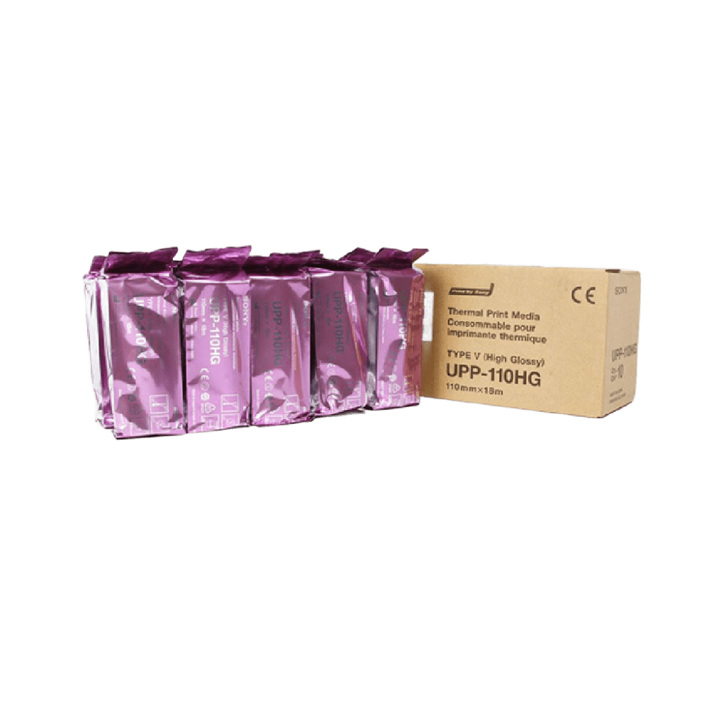 El papel ecográfico Sony UPP-110HG es un papel térmico de alta calidad y alto brillo, diseñado especialmente para la impresión de imágenes generadas en aplicaciones de ultrasonido