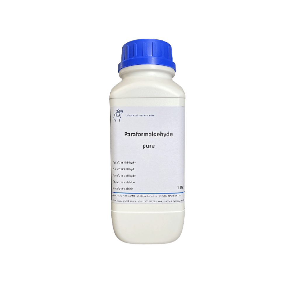 Las características y composición: El paraformaldehído es un polvo o sólido blanco cristalino, con olor característico a formaldehído, polímero lineal del formaldehído con un grado de polimerización típico entre 8 y 100 unidades. No es fijador por sí mismo, pero al despolimerizarse en solución acuosa genera formaldehído, usado para fijación, desinfección y conservación biológica. Se emplea también en la industria para fabricar resinas melamínicas, urea-formaldehído, fenólicas, y aglutinantes para madera y tableros. Beneficios: forma sólida fácil de almacenar, liberación controlada de formaldehído, versatilidad industrial y química. Modo de empleo: Se despolimeriza con calor o base para liberar formaldehído activo, que se utiliza para desinfección, fijación y síntesis química. Manipular con equipo de protección adecuado, evitando la inhalación y el contacto directo. Almacenar en envases herméticos y lugares frescos y secos.