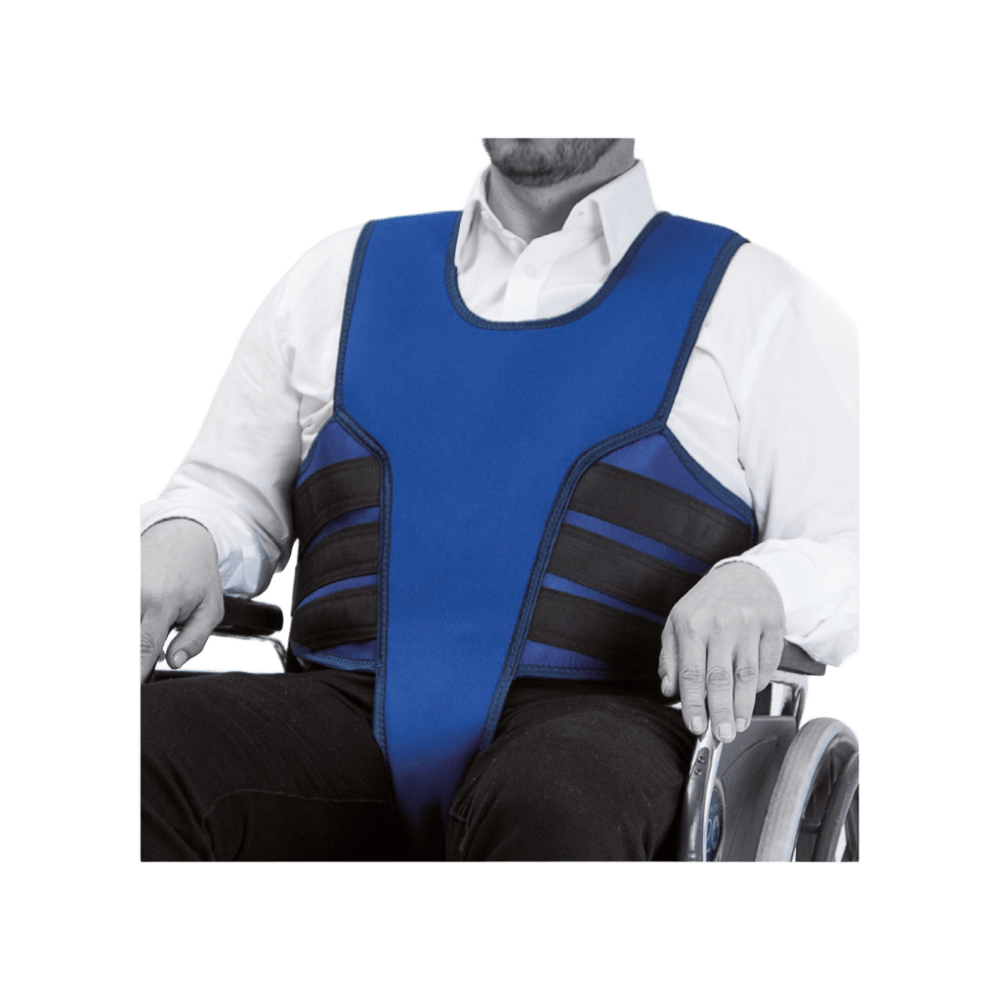 Peto Salvaclip Comfort con perineal. El Salvaclip Comfort es un chaleco perineal para silla de ruedas que brinda soporte al torso y hombros, evitando inclinaciones y deslizamientos, con cierres clip regulable para un ajuste personalizado