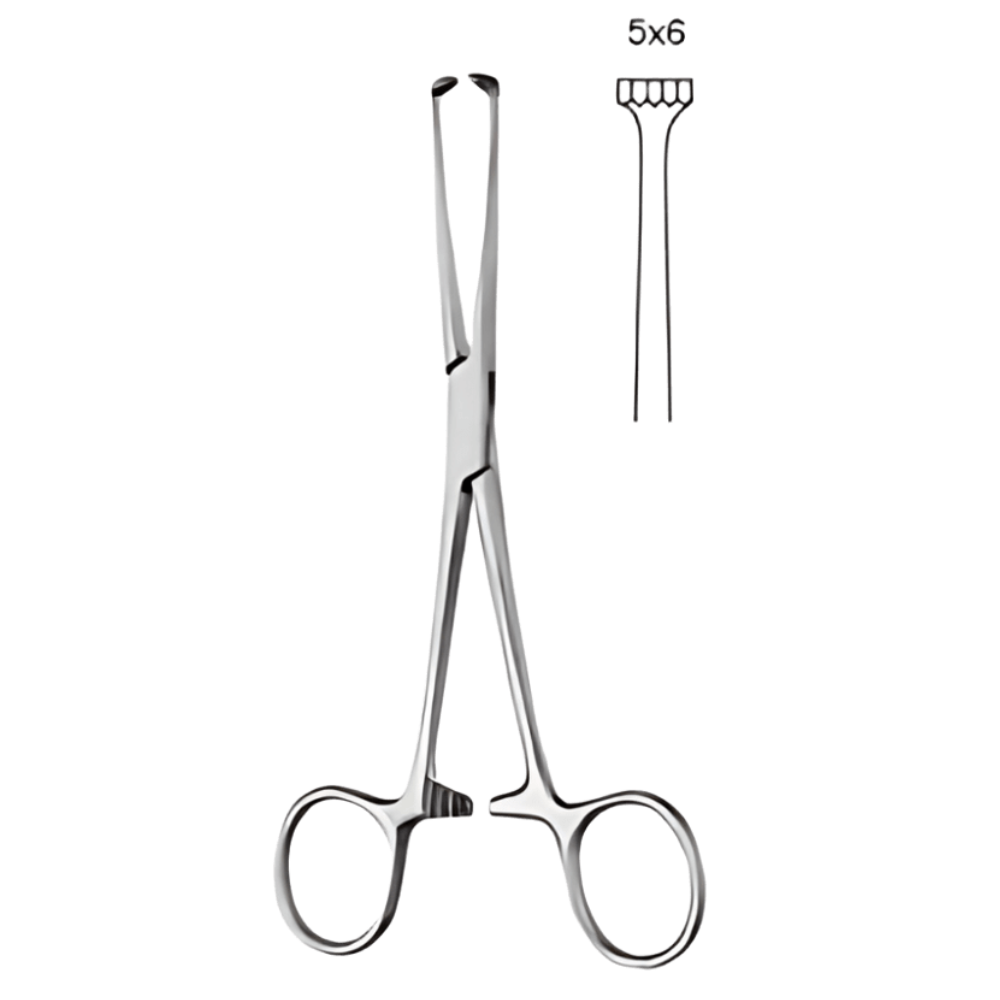 Pinza BOYS.ALLIS. Pinza Boys-Allis de 15 cm, con puntas dentadas y diseño antideslizante, ideal para sujetar tejidos e intestinos con firmeza y seguridad durante procedimientos quirúrgicos.