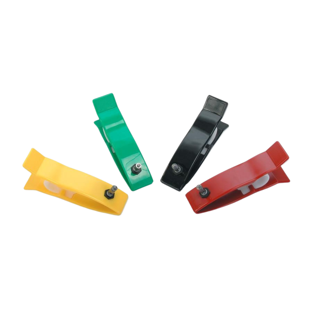 Pinzas para Extremidades Adulto – Pack de 4 Electrodos Reutilizables para ECG Electrodos tipo pinza reutilizables, con conexión universal, ideales para la toma de ECG en pacientes adultos en reposo.