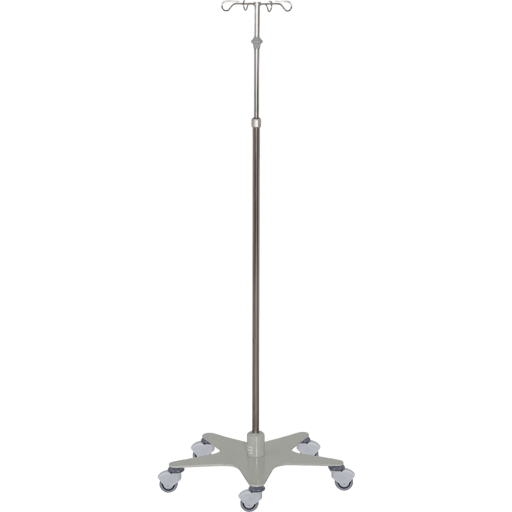 PORTASUEROS 4 COLGADORES BASE ANTIVUELCO ACERO INOX. C/PULSADOR - UNIDAD Portasueros hospitalario de acero inoxidable con 4 colgadores, pulsador de ajuste en altura y base antivuelco para máxima estabilidad y seguridad. Ideal para uso clínico y hospitalario.