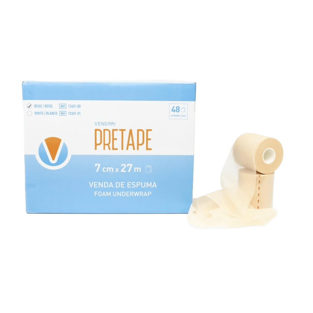 Pre-Tape – Vendaje de Espuma de Poliuretano El Pre-Tape es un vendaje de espuma de poliuretano utilizado como base protectora antes de aplicar vendajes funcionales, deportivos o neuromusculares. Su función principal es evitar el contacto directo del adhesivo con la piel, reduciendo la irritación y facilitando la retirada del vendaje. Características principales: • Fabricado en espuma de poliuretano ligera y flexible. • Medidas: 7 cm de ancho x 27 m de largo, ideal para múltiples aplicaciones. • Disponible en colores blanco y beige, para adaptarse a las preferencias del usuario. • Fácil de aplicar y retirar, sin dejar residuos. • Aporta una capa cómoda y suave que protege la piel durante tratamientos prolongados. Ideal para deportistas, fisioterapeutas y profesionales de la salud que realizan vendajes con frecuencia, proporcionando una base eficaz y confortable. .
