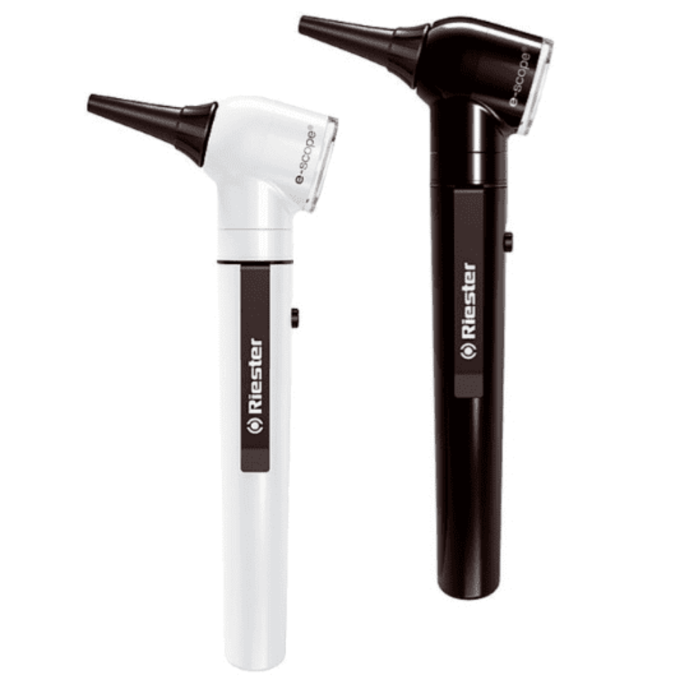 El Otoscopio e-scope® de Riester ofrece una solución moderna, ecológica y eficiente para la exploración auditiva. Disponible en versiones con fibra óptica de xenón o iluminación LED de alta intensidad, este otoscopio combina una excelente visibilidad con bajo consumo energético. Su óptica avanzada, reducción de reflejos y lentes giratorias permiten un diagnóstico claro, preciso y cómodo tanto en consulta como en atención domiciliaria. ???? Características generales: • Otoscopio profesional con opciones de fibra óptica o iluminación directa • Tecnología ecológica y bajo mantenimiento • Iluminación blanca uniforme en todo el campo visual • Ideal para médicos generales, especialistas ORL y estudiantes ???? Opciones de iluminación: • Fibra óptica con lámpara de xenón de 2,5V (3200 K) • Iluminación LED innovadora de 3,7V (5500 K) • También disponible con iluminación directa mediante: ▪ Bombilla de vacío de 2,7V (2500 K) ▪ Lámpara de xenón de 2,5V (3000 K) ???? Óptica y diseño: • Reducción de reflejos para mejorar la visibilidad • Lente giratoria con aumento 3x para inspección precisa del canal auditivo y membrana timpánica • Iluminación homogénea que facilita el diagnóstico • Conexión para otoscopia neumática ???? Accesorios incluidos: • 10 espéculos desechables para oído: ▪ 5 de 2,5 mm ▪ 5 de 4 mm
