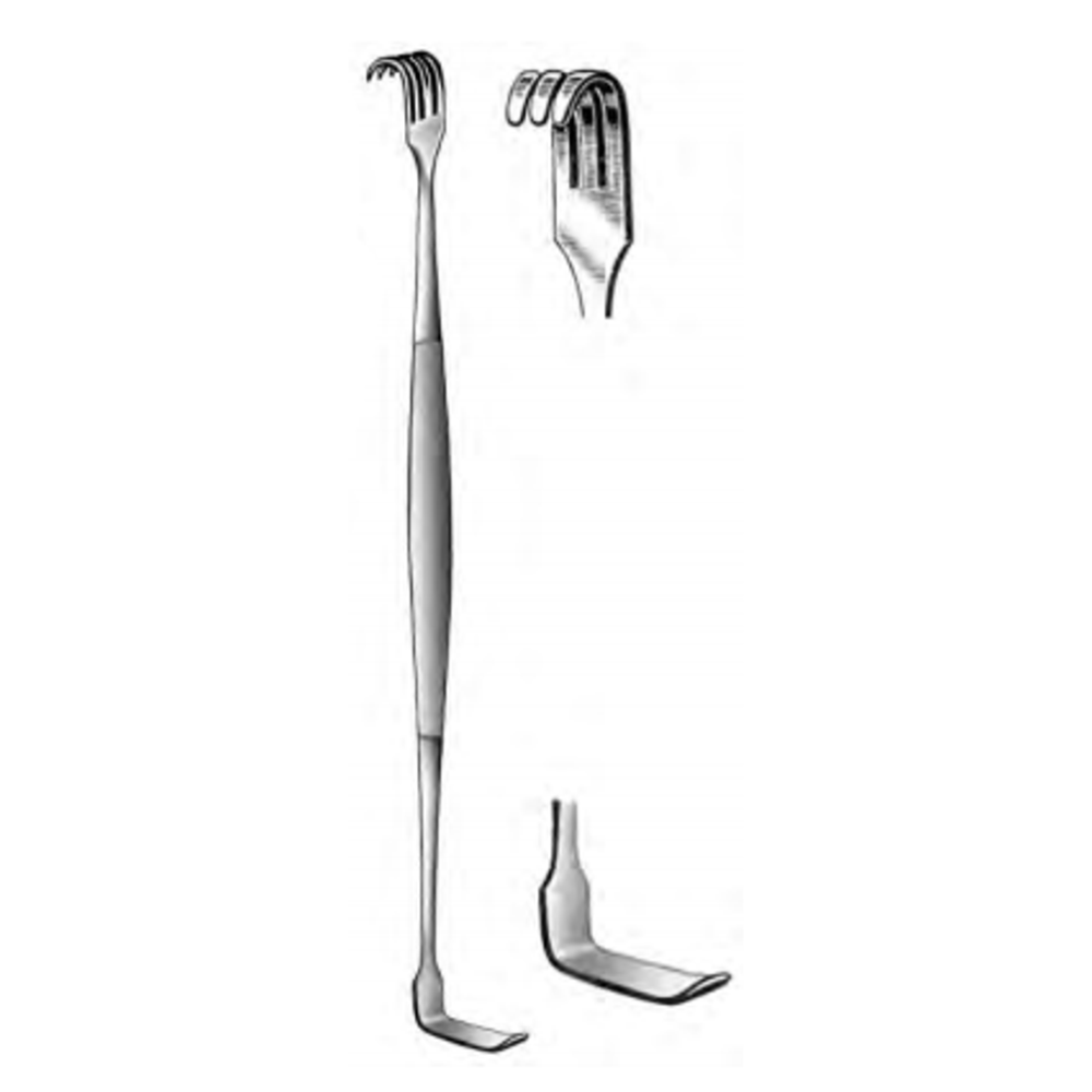 El separador de Senn-Miller es un instrumento quirúrgico manual diseñado para facilitar la exposición y el acceso a tejidos durante procedimientos quirúrgicos. Cuenta con dos extremos funcionales: uno con tres dientes curvados que permiten un agarre firme y otro con una hoja curva plana para una separación suave y controlada. Su diseño ergonómico y robusto lo hace ideal para cirujanos que requieren precisión y versatilidad en la manipulación de tejidos. Fabricado en acero inoxidable alemán, combina durabilidad y resistencia para uso prolongado en el quirófano. Características: • Instrumento manual para separar tejidos • Dos extremos: uno con tres dientes curvos y otro con hoja curva plana • Longitud total: 17 cm • Fabricado en acero inoxidable alemán de alta calidad • Diseño ergonómico para mejor manejo • Duradero y resistente a la corrosión • Uso común en procedimientos quirúrgicos generales