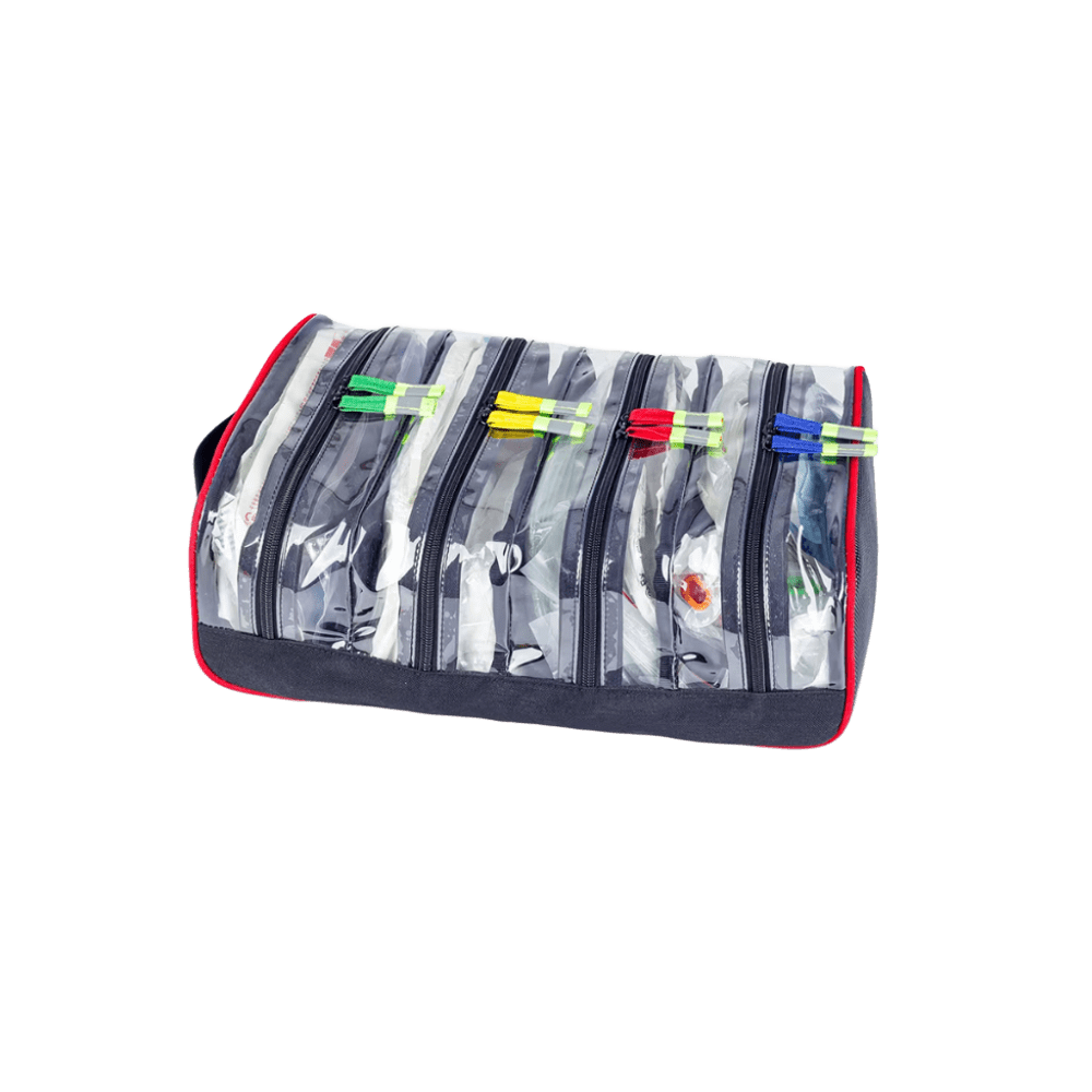 Set de 4 Compartimentos de Colores – Organización profesional y codificada para primeros auxilios El set de 4 compartimentos interiores está diseñado para facilitar una organización rápida, visual y eficiente del material médico en bolsas de emergencias o primeros auxilios. Cada compartimento tiene un color codificado internacionalmente según la especialidad: • Azul: respiración • Rojo: sistema circulatorio • Verde: material quirúrgico • Amarillo: uso pediátrico Cada bolsa cuenta con un frontal transparente que permite la identificación inmediata del contenido sin necesidad de abrirla, y tiradores de cremallera largos y reflectantes, que mejoran la visibilidad y el acceso, incluso en condiciones de baja luz. Su tamaño compacto (28 × 9 × 10 cm) permite encajarlas perfectamente en cualquier bolsa de primeros auxilios, especialmente las de la línea Elite Bags. Estas bolsas son ideales para personal de emergencias, enfermería, servicios sanitarios móviles y rescatistas, ya que permiten segmentar y localizar rápidamente los suministros según el tipo de intervención. Características destacadas: • Set de 4 bolsas interiores de colores codificados • Dimensiones por unidad: 28 × 9 × 10 cm • Frontal transparente para identificación del contenido • Tiradores largos y reflectantes – fácil acceso y visibilidad • Compatible con bolsas de primeros auxilios Elite Bags • Ideal para clasificar material respiratorio, circulatorio, quirúrgico y pediátrico • Favorece la rapidez y precisión en intervenciones médicas