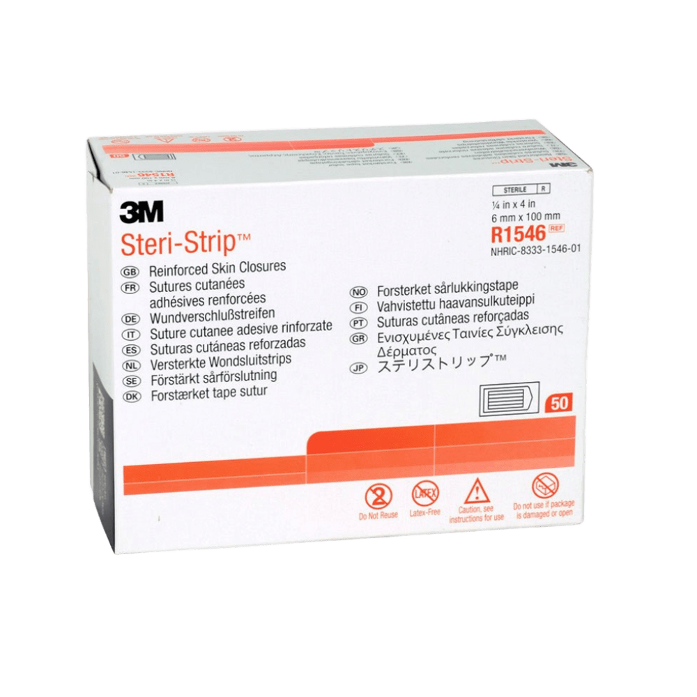 Tira de sutura cutánea Steri-Strip, adhesiva, tamaño 3 mm x 75 mm, color morado para fácil identificación. Proporciona cierre preciso y seguro de heridas superficiales, minimizando cicatrices. Hipoalergénica, resistente y fácil de aplicar. Presentación en caja de 250 unidades, ideal para uso hospitalario y clínico.