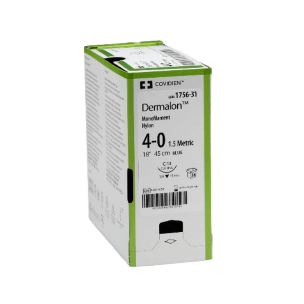 Dermalon™ – Sutura Sintética No Absorbible Monofilamento Precisión, resistencia y biocompatibilidad para cierres confiables Dermalon™ es una sutura quirúrgica sintética, no absorbible y monofilamento, compuesta por poliamida 6 y poliamida 6.6 (nylon). Diseñada para aplicaciones que requieren alta resistencia mecánica y manipulación precisa, ofrece un rendimiento confiable en el cierre de piel y en la aproximación de tejidos blandos. Gracias a su avanzado proceso de extrusión, Dermalon™ presenta un diámetro uniforme, máxima flexibilidad de la hebra y mínima memoria de forma, lo que facilita su manejo y anudado durante los procedimientos quirúrgicos. Características y beneficios: • Composición de poliamida 6 y 6.6 (nylon), material no absorbible de alta biocompatibilidad • Monofilamento de superficie lisa que minimiza el trauma tisular • Excelente resistencia tensil para mantener la integridad del cierre • Diámetro uniforme que garantiza un comportamiento predecible • Seguridad en el nudo con mínima relajación posterior • Bajo efecto memoria que facilita la manipulación quirúrgica • Disponible en color azul o transparente para adaptarse a diferentes necesidades clínicas • Indicada para cierre cutáneo, cirugía general, plástica, oftálmica, entre otras aplicaciones que requieren soporte duradero .