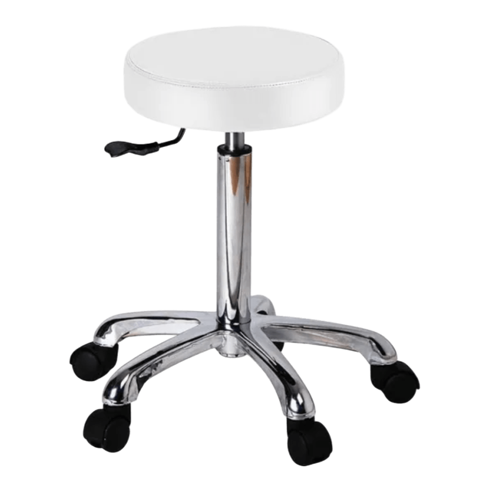 Taburete 5 Ruedas Giratorio Sin Respaldo Blanco