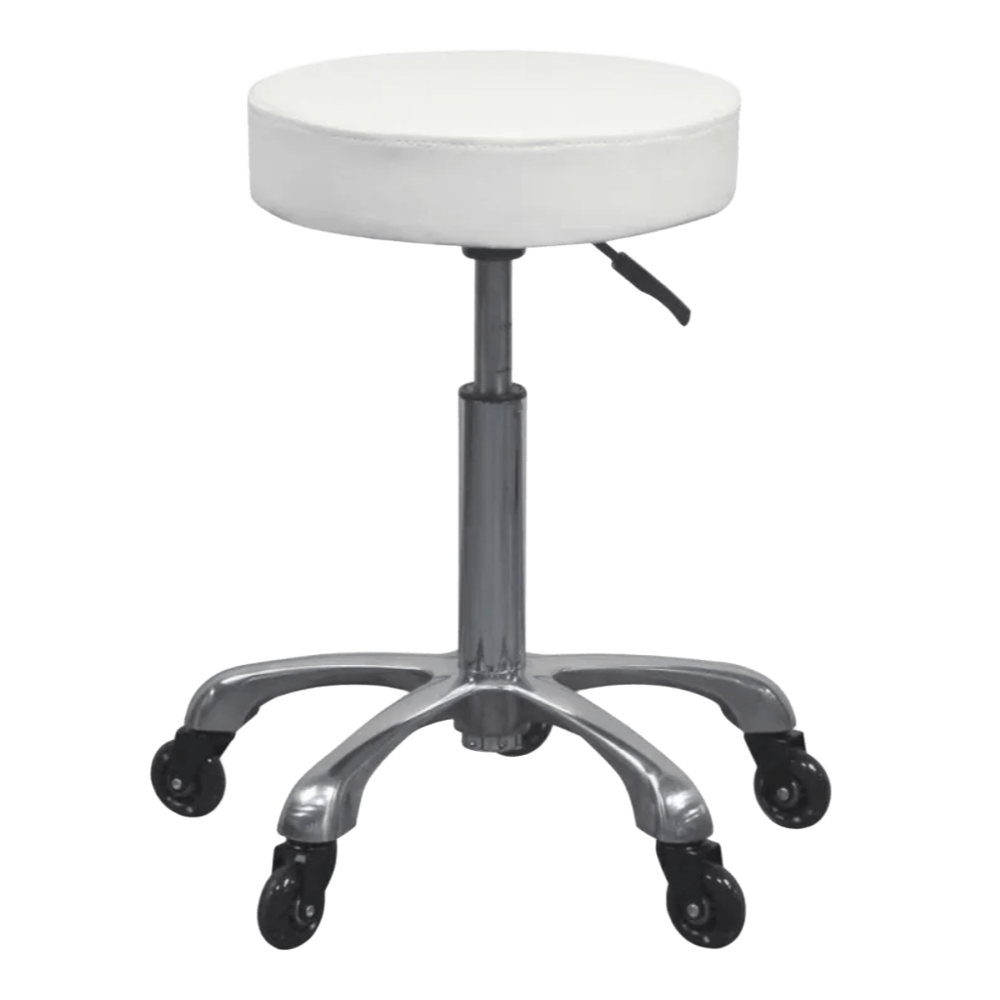 TABURETE SILENT FAST DE ASIENTO PLANO CON 5 RUEDAS SILENCIOSAS BLANCO - UNIDAD Taburete sanitario Silent Fast con asiento plano y 5 ruedas silenciosas, diseñado para ofrecer movilidad fluida, estabilidad y máxima comodidad en consultas y entornos clínicos.