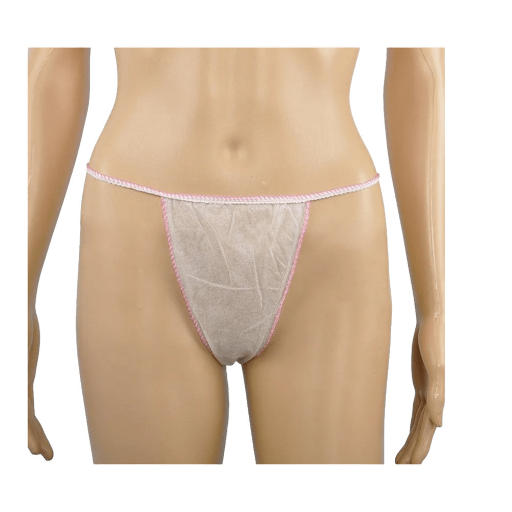 Tanga Dama Mini PP – Caja 100 uds Tanga desechable para mujer, fabricado en polipropileno de alta calidad, ideal para centros de estética, spas, balnearios, hoteles y uso en viajes.