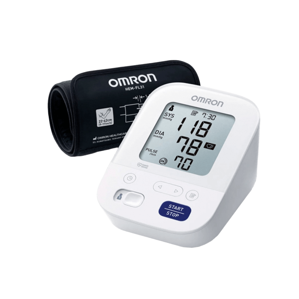 Tensiómetro M3 Comfort – Automático con Manguito 22–42 cm Tensiómetro digital validado clínicamente. Memoria para 2 usuarios, pantalla LCD grande, detección de arritmias y tecnología Intellisense. Incluye pilas, instrucciones y estuche.