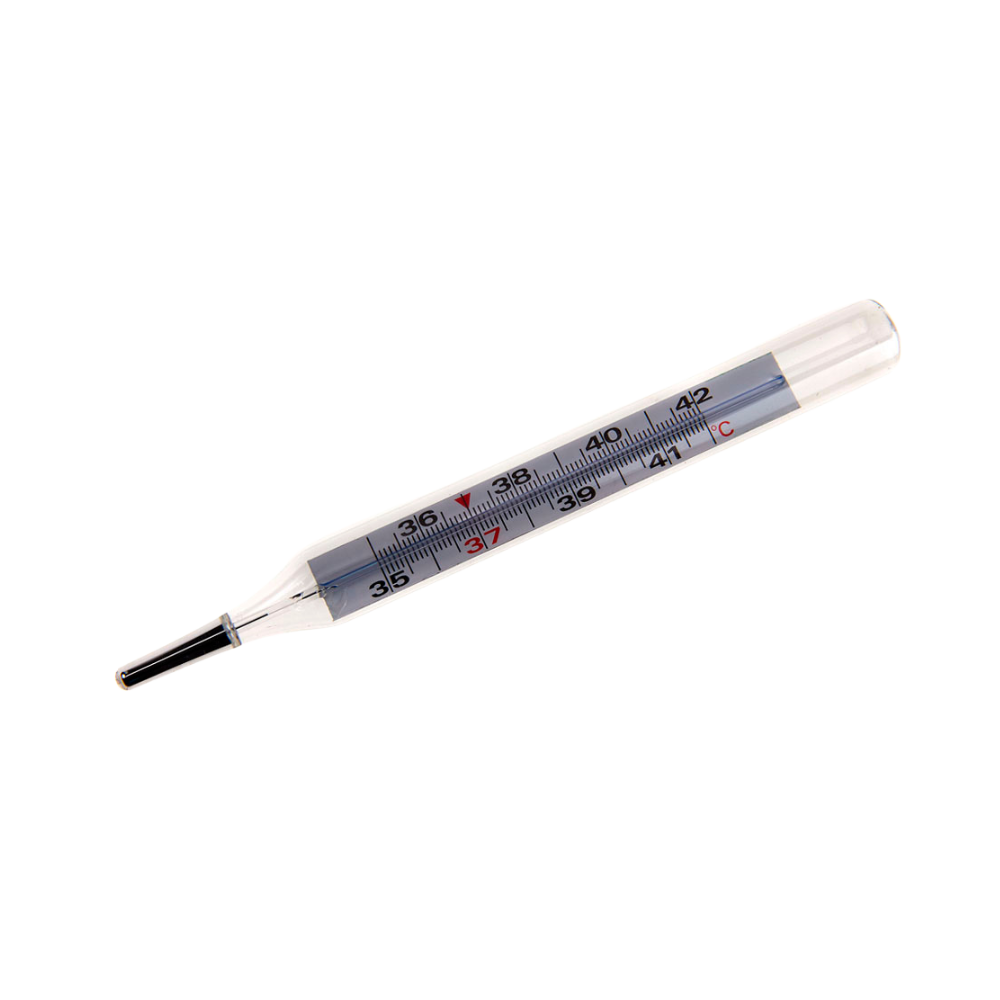 Termómetro clásico de galio – Precisión sin mercurio Termómetro médico de cristal, sin mercurio, con líquido de galinstano. Señalización analógica de máxima para mediciones precisas y seguras.