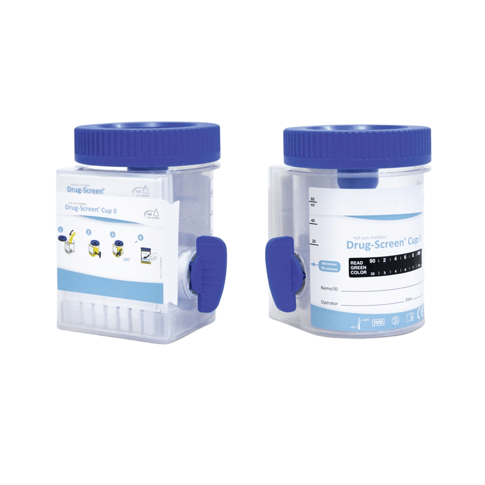 Test rápido en formato copa para detección simultánea de 5 drogas en orina: anfetaminas (AMP), benzodiacepinas (BZD), cocaína (COC), morfina/opiáceos (MOR/OPI) y cannabis (THC). Incluye cámara separada para muestra y test, tira de temperatura para control de frescura y llave de activación. Resultados fiables en 5 minutos, alta sensibilidad, minimiza contacto con la muestra. Caja de 25 unidades, ideal para uso clínico y laboral.