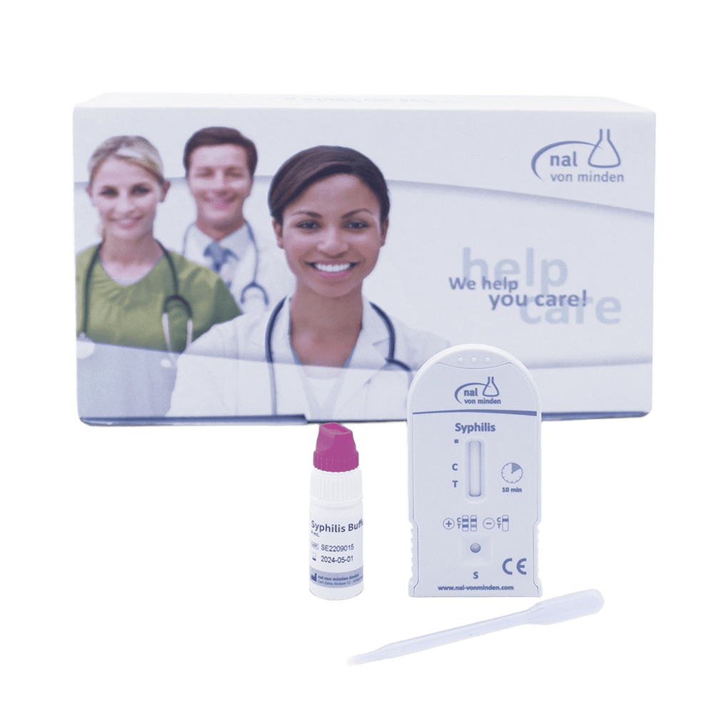 Test rápido inmunocromatográfico en formato cassette para la detección cualitativa de anticuerpos IgM e IgG anti-Treponema pallidum en sangre, suero o plasma. Proporciona resultados en 10 minutos, con sensibilidad y especificidad superiores al 99%. Incluye pipetas y buffer, fácil de usar, recomendado para cribado profesional y diagnóstico temprano de sífilis. Caja de 20 unidades, alta fiabilidad y rapidez en entornos clínicos.