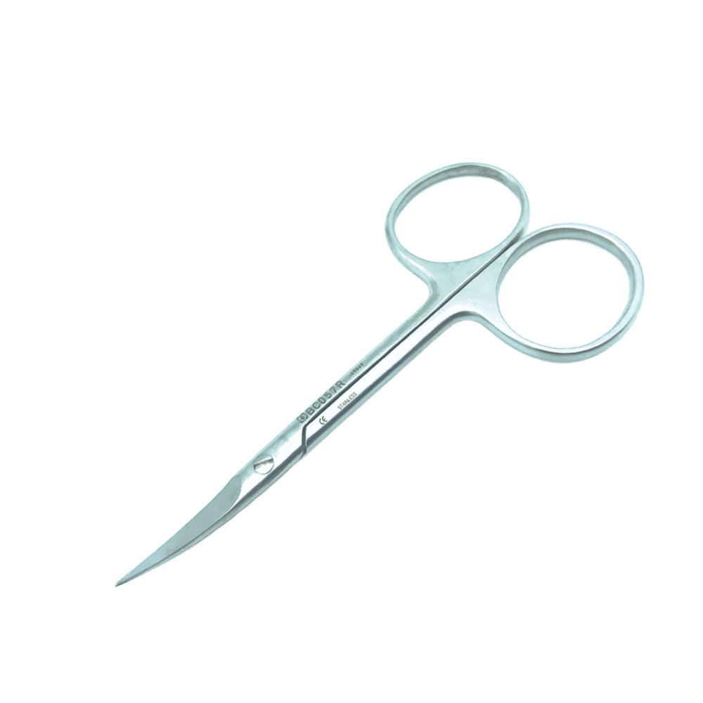 Tijera extrafina recta o curva de 95 mm fabricada por la marca Aesculap