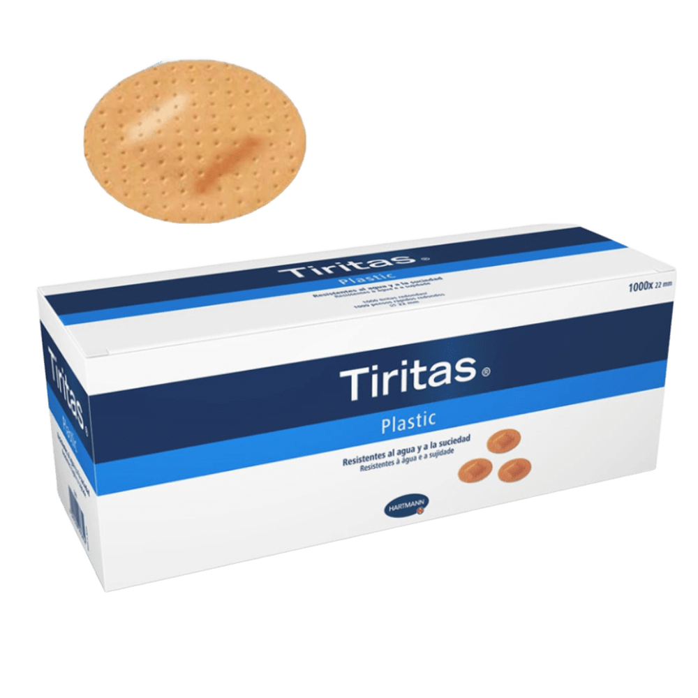 Tirita Plástica Redonda – Resistente al Agua y a la Suciedad, Caja 1000 Unidades Apósito redondo para pequeñas heridas. Adhesivo hipoalergénico, transpirable y no adherente a la herida. Alta tolerancia cutánea. Formato profesional en caja de 1000 unidades.