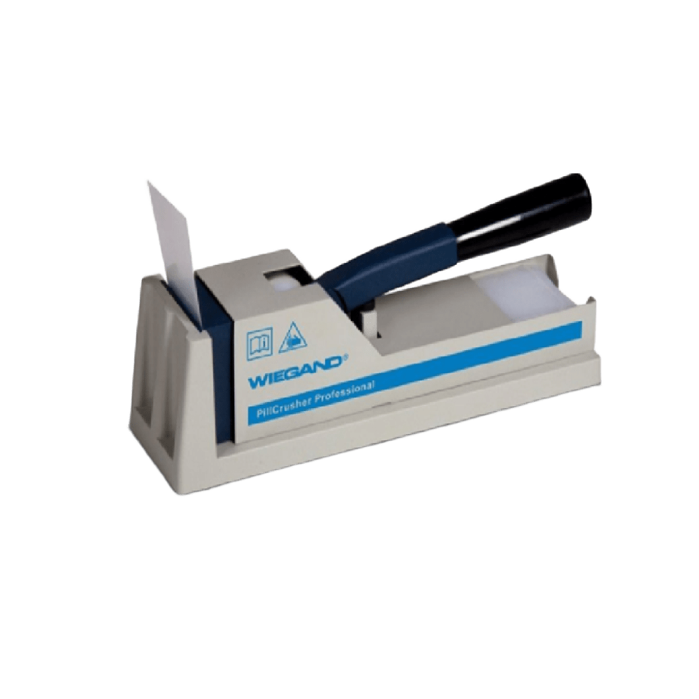 Triturador de pastillas Pillcrusher profesional con sistema de palanca, fabricado en materiales resistentes. Permite triturar comprimidos de forma fácil, rápida y sin esfuerzo, obteniendo polvo fino para facilitar la administración oral. Diseño ergonómico, seguro y fácil de limpiar. Unidad ideal para hospitales y residencias.