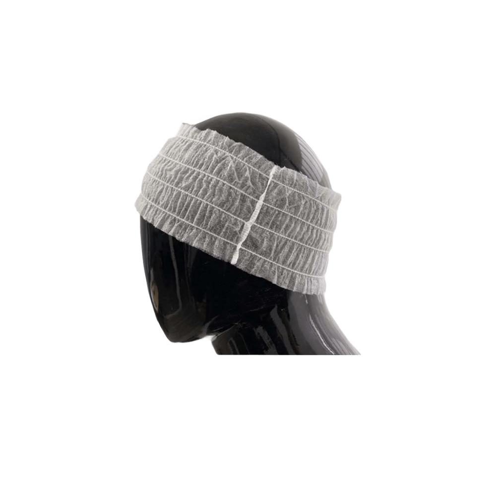 Turbante Desechable 30 g – Bolsa x100 Uds Cinta de polipropileno blanco con tres elásticos, envasada individualmente. Ligera, cómoda y de un solo uso. Ideal para recoger el cabello en entornos sanitarios, estéticos o alimentarios.