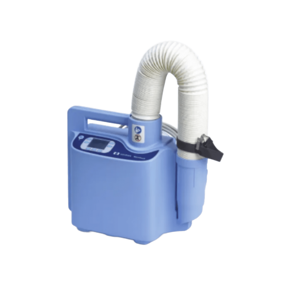 Warm Touch™ – Sistema Térmico por Convección para el Control de la Temperatura Corporal Warm Touch™ es un sistema térmico por convección, compuesto por una unidad térmica electrónica y una manta ligera, diseñado para prevenir o tratar la hipotermia y mantener la normotermia en pacientes adultos o pediátricos en entornos clínicos. El aire caliente es suministrado por un tubo flexible desde la unidad hasta la manta, que lo distribuye uniformemente mediante múltiples microorificios, garantizando una cobertura eficaz del cuerpo del paciente. Características y especificaciones: • Varios ajustes de temperatura: permiten personalizar el tratamiento según las necesidades clínicas. • Modo Rápido: proporciona aire a 47 °C durante 45 minutos para un calentamiento acelerado, luego desciende automáticamente a 45 °C. • Filtro HEPA integrado: retiene al menos el 99,97 % de partículas ≥ 0,3 µm, asegurando aire limpio al paciente. • Protección térmica automática: apaga el sistema y activa una alarma si la temperatura se desvía del rango seguro. • Montaje versátil: puede utilizarse de forma independiente o instalarse en soporte IV, cama o carro de transporte opcional. • Carro con ruedas bloqueables (opcional): facilita el traslado seguro de la unidad térmica durante su uso clínico. .