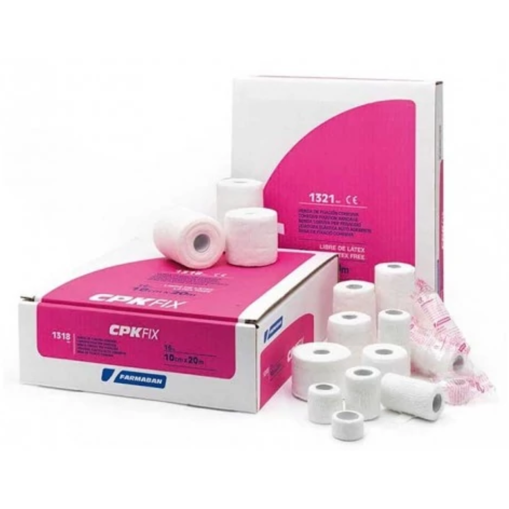 CPK Fix Látex Free es una venda cohesiva de fijación con elasticidad longitudinal, fabricada con un tejido compuesto de 70 % viscosa y 30 % poliamida. Su recubrimiento con una fina capa de masa cohesiva sin látex garantiza una fijación firme pero suave, especialmente pensada para pieles sensibles o con alergias. Gracias a su capacidad de adherirse únicamente sobre sí misma y no a la piel, permite realizar vendajes cómodos, rápidos y sin pliegues, incluso en zonas difíciles del cuerpo. Esta característica antideslizante evita desplazamientos no deseados, manteniendo el vendaje en su lugar con total fiabilidad. Además, su estructura permeable al aire permite la transpiración, ayudando a mantener la piel seca y protegida. Es moldeable, ligera, fácil de aplicar y puede esterilizarse mediante vapor (fuera de su envase original) si el procedimiento lo requiere. Presentada en diferentes formatos, esta venda se adapta a las necesidades del profesional sanitario para una fijación eficaz y confortable. ✅ Características destacadas Composición del tejido: 70 % viscosa, 30 % poliamida Libre de látex: ideal para personas con alergias Autoadherente: se fija sobre sí misma, no sobre la piel Antideslizante: asegura un vendaje estable y duradero Elástica en sentido longitudinal: permite una fijación precisa sin tensión excesiva Transpirable: permeable al aire, favorece la salud de la piel Moldeable y fácil de aplicar: se adapta a zonas anatómicas complejas Esterilizable: mediante vapor, fuera del envase original Presentación: rollos en bolsa de polipropileno