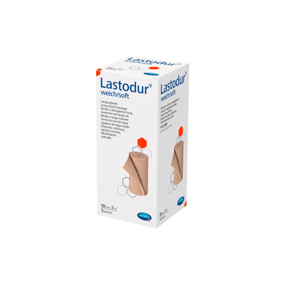 Lastodur Straff 8×7 m – Venda compresiva elástica de larga duración y alta adaptabilidad Lastodur Straff es una venda compresiva de elasticidad permanente, diseñada para terapias de compresión controlada. Con una elasticidad aproximada del 180%, permite ajustar la tensión según las necesidades clínicas, manteniendo una presión uniforme durante su uso. Fabricada en un material altamente resistente y adaptable, esta venda garantiza una sujeción firme sin limitar la movilidad. Es transpirable, no irrita la piel y resulta cómoda incluso en vendajes prolongados. Su uso es económico, ya que puede esterilizarse y lavarse a 60 °C sin perder sus propiedades. Ideal para tratamientos de enfermedades venosas, edemas, lesiones musculares y vendajes de soporte en traumatología. Características destacadas: • Elasticidad permanente del 180% • Presión homogénea – compresión ajustable • Alta adaptabilidad y resistencia • Transpirable y agradable al contacto con la piel • No irrita – apta para uso prolongado • Lavable a 60 °C y esterilizable • Color carne – discreta y estética • Ideal para tratamientos compresivos y de soporte .