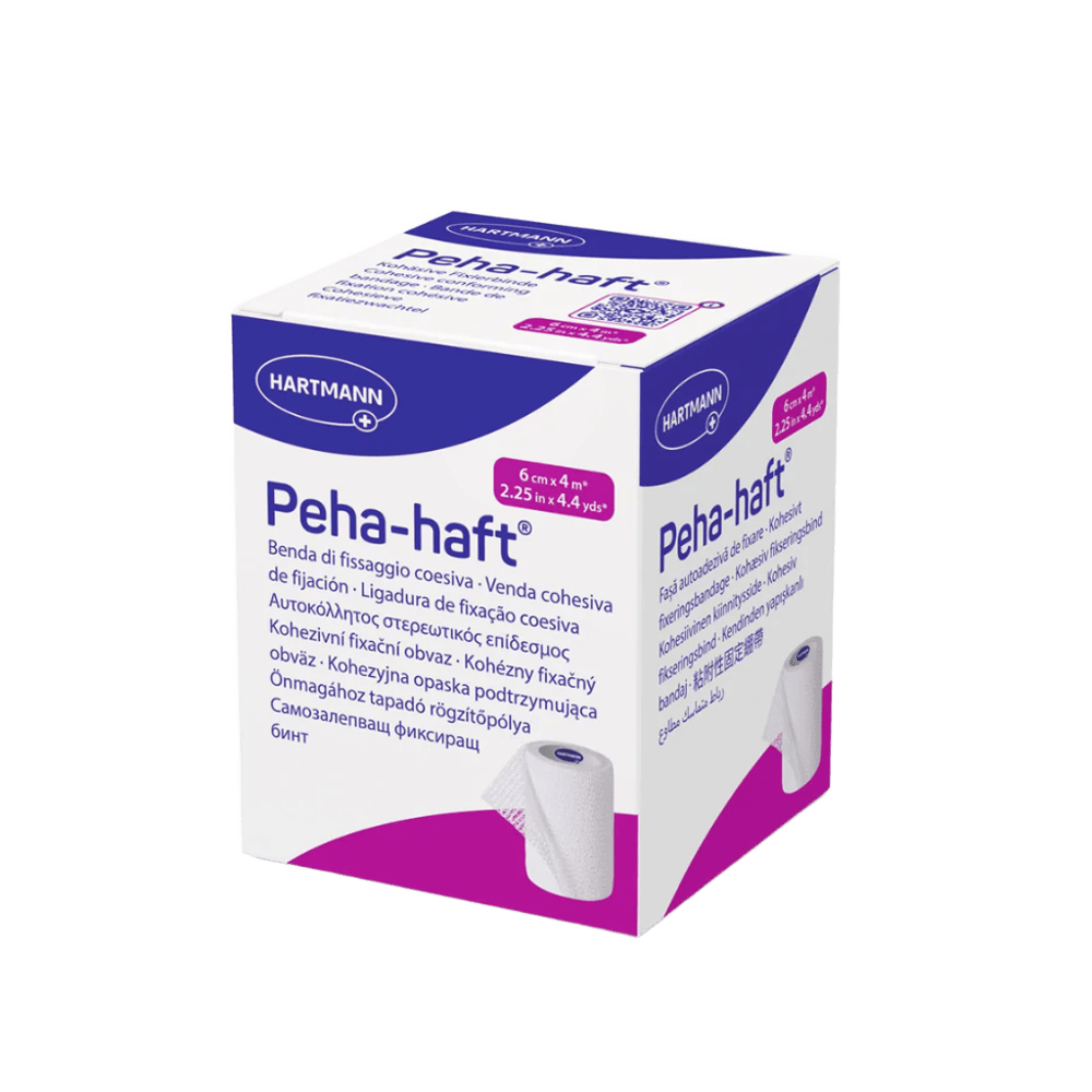 Peha-haft® es una venda de fijación cohesiva de alta elasticidad diseñada para asegurar apósitos, cánulas y férulas en cualquier parte del cuerpo, especialmente en articulaciones y zonas cónicas. Gracias a su efecto cohesivo, se adhiere a sí misma sin pegarse a la piel ni al vello, ofreciendo una estabilización ligera y cómoda en entornos clínicos o domésticos. Es un producto sanitario de Clase I (MDR), fabricado con una mezcla suave de algodón, viscosa y poliamida.