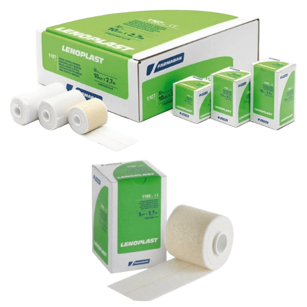 Lenoplast es una venda adhesiva elástica longitudinalmente, fabricada con tejido 100% algodón blanqueado que le confiere suavidad y gran afinidad con la piel. Gracias a su especial urdimbre, permite una elasticidad controlada únicamente en sentido longitudinal, proporcionando soporte eficaz sin restringir el movimiento natural de la extremidad. El adhesivo utilizado está compuesto por caucho natural, colofonia y óxido de zinc, aplicado en una fina capa uniforme y porosa que garantiza una fuerte adherencia a la piel a la vez que permite la transpiración, evitando la acumulación de humedad y la maceración cutánea, incluso cuando se utiliza durante largos períodos. Además, el adhesivo está dispuesto con márgenes libres para proteger la piel de irritaciones o lesiones causadas por la fricción del adhesivo. Lenoplast cuenta con falsas orillas que evitan el deshilachado del tejido, lo que previene molestias y posibles estrangulamientos durante el vendaje. Su centro inyectado de 18 mm con bordes no cortantes facilita la manipulación del producto, asegurando un manejo seguro y cómodo para los profesionales sanitarios. Este vendaje es ideal para fijación de apósitos, vendajes de soporte y compresión, siendo un producto versátil y confiable en tratamientos médicos que requieren adherencia duradera, confort y protección de la piel. Características principales: Composición: 100% algodón blanqueado (tejido elástico longitudinalmente). Adhesivo: Caucho natural, colofonia y óxido de zinc aplicado en capa fina, porosa y uniforme. Elasticidad: Solo en sentido longitudinal (urdimbre), para soporte eficiente sin restringir movilidad. Transpirabilidad: Adhesivo poroso que permite la ventilación de la piel, evitando maceración. Protección cutánea: Márgenes sin adhesivo para evitar irritaciones y lesiones durante usos prolongados. Durabilidad: Falsas orillas que evitan deshilachado del tejido. Facilidad de uso: Centro inyectado con bordes no cortantes que facilitan la manipulación segura. Presentación: Empaques unitarios y hospitalarios, en bolsa termosellada o caja de cartón. Aplicaciones: Fijación de apósitos, vendajes de soporte y compresión. Color: Blanco con línea guía amarilla central para facilitar la aplicación. Esterilizable: Puede esterilizarse por radiación gamma u óxido de etileno sin el envase original.