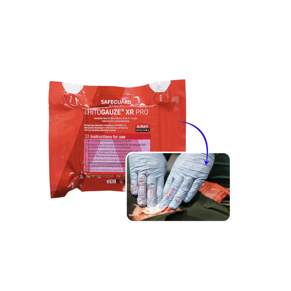 ChitoGauze XR-PRO – Gasa hemostática con quitosano para hemorragias severas Gasa de alto rendimiento impregnada en quitosano, con propiedades hemostáticas y antibacterianas. Controla el sangrado en segundos. Efectiva, fácil de retirar y segura.