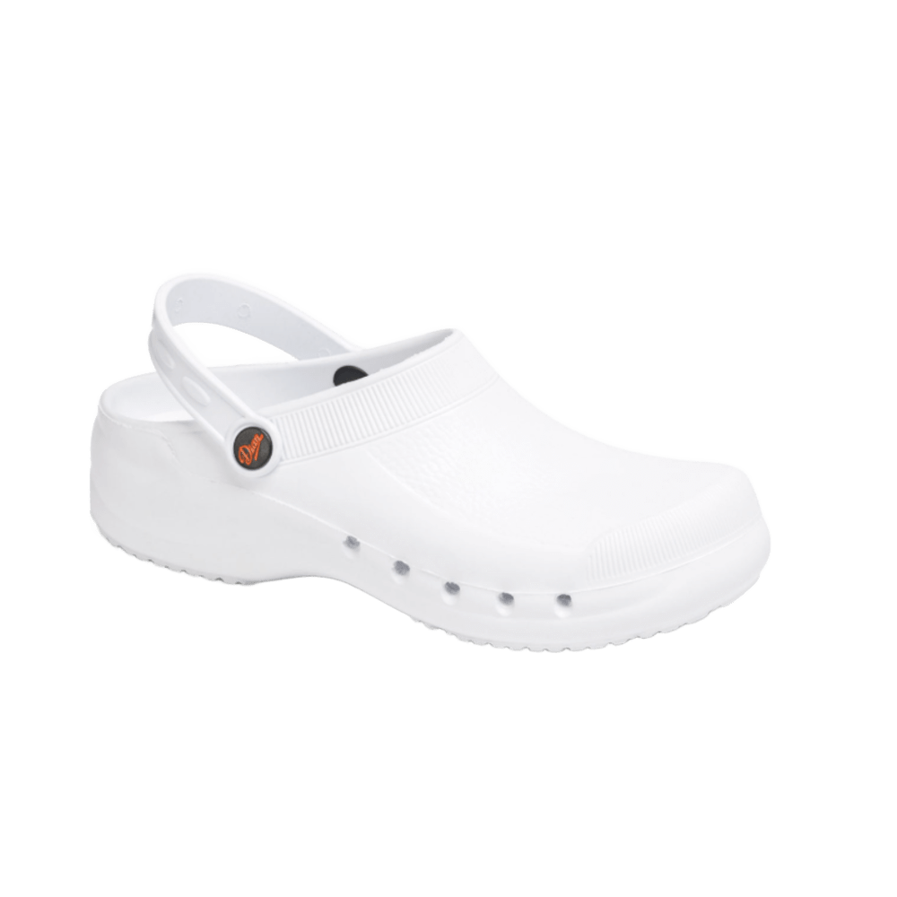 Características Principales Material: Confeccionado en material EVA (acetato de vinilo de etileno), es monocasco, ultraligero y libre de látex. Suela: Cuenta con celdillas de material de caucho en la suela para un mayor agarre, ofreciendo un alto nivel de antideslizamiento (SRC) en todo tipo de suelos. Diseño: Es anatómico, con perforaciones laterales que facilitan la transpiración y evitan la penetración directa de líquidos. Comodidad: Incorpora una planta con micropuntos de masaje que ayudan a estimular la circulación sanguínea. Higiene: Es apto para lavado en lavadora hasta 40º, y algunos modelos son antibacterianos y virucidas. Ajuste: Dispone de una correa posterior abatible que se puede colocar sobre el talón o la pala para un mejor ajuste.